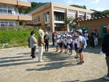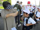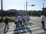 前期課程の縦割り班には保護者ボランティアの方々が一緒に歩いて、安全確保していただきました。