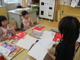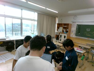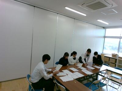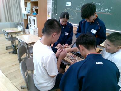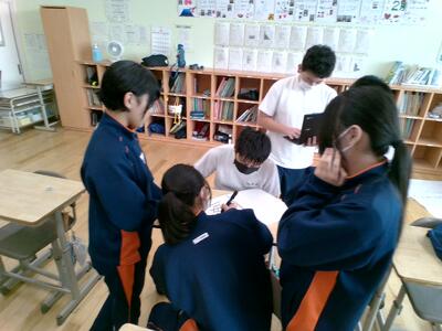 昼休みに、来週21日(火)の校外学習のバス内レクリエーションの準備をしています。
