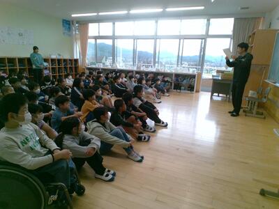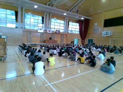 1校時に全校児童生徒が体育館に集まって、始業式が行われました。