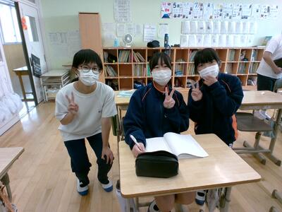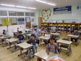 6時間授業の上級生たちと同じ時間帯に学校で過ごすことができるということで、ちょっと大きくなった気分になれて、とてもうれしそうな1年生たちでした。