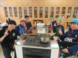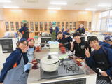 7年生は家庭科の授業で、豚汁を作りました。