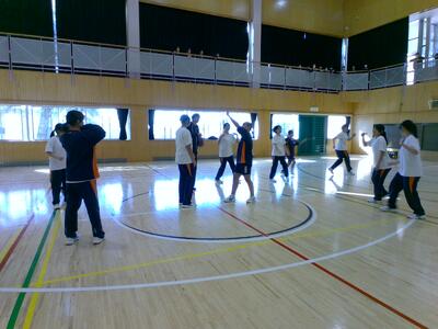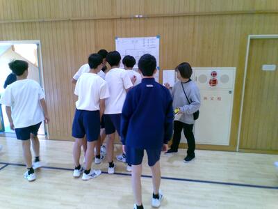 ジョッグ、300mリレーのあと、全員で円陣を作り体操をしました。