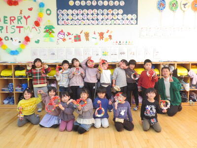 12月18日(木)の放課後子ども教室では、クリスマス飾りを作りました。素敵なクリスマスリースが完成しました。