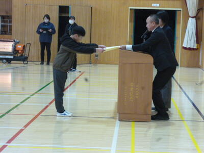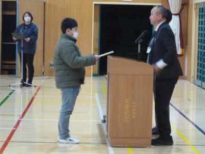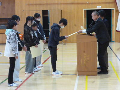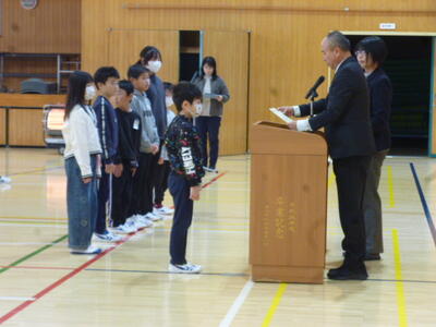 絵画や工作、書道や作文等の文化面や、陸上や駅伝等の運動面で活躍した児童に賞状やメダルが授与されました。