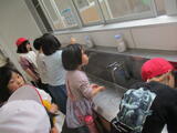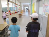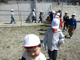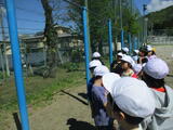 1年生は、校庭をぐるっと1周まわり、行ってよい場所や使ってよい物などの確認をしました。広い校庭や高い鉄棒に驚いていました。