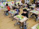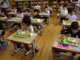初めての給食でしたが、準備から片付けまで、落ち着いてしっかり行うことができました。
