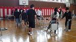 バスケットボール部は男女合同練習で、先生も一緒に、