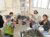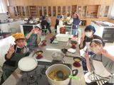 煮干しからだしを取り、班ごとに選んだ実を入れて、みそ汁を作りました。どの班も大満足のおいしさでした。