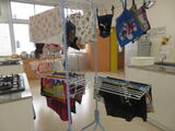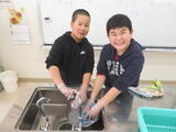 6年生は家庭科の時間に洗濯の実習を行いました。給食のテーブルクロスやその袋などを洗いました。