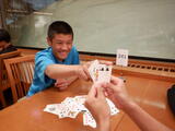 夕食はバイキングで、デザートをたくさんお替りしたりして普段と違う生活を楽しんでいました。また夕食後は室内レクが行われました。トランプのババ抜きで最強王最弱王を決めました。また、ジェスチャーゲームを部屋班ごとに対決して楽しみました。
