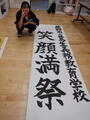 笑顔満祭、あくとプラザの立て看板を、書道が得意な9年生が書いてくれました。
