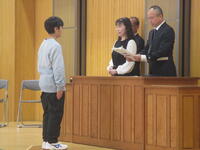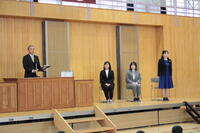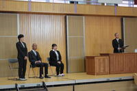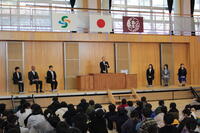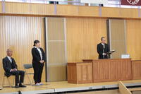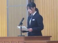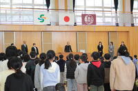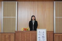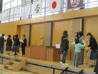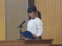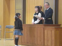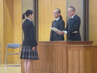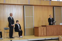 3月24日(月)修了式が行われました。校長先生から代表児童生徒に修了証が渡されました。校長先生からは、この一年を振り返り、希望をもって新たなスタートを切ってほしいという内容のお話がありました。その後、代表3名が堂々とした態度で、今年度頑張ったことなどを発表しました。